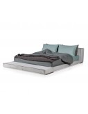 Differentiated density polyurethane foam filling. Leather upholstery with sharp edge stitching. A mattress can be purchased separately.