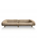Frame in beech plywood. Antiqued brass front feet. Di©erentiated density polyurethane foam filling with acrylic fibre covering. Springing with woven elastic straps of covered rubber.