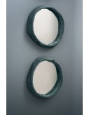 Structure in matte black-stained poplar plywood. Frame covered with tucked leather. Mirror back.