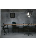 Frame in forged angle and flat metal. Flat metal is assembled with hammered tingles. Seat cushion in differentiated density polyurethane foam filling. Feet end covered with leather. Antirust protection with clear matte enamel or matte white RAL 9010 oven epoxy coating. Upholstery with stitching with decorative pattern.