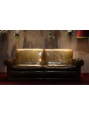 Modular article. Double-panelled fir and poplar frame. Strip feet in walnut-stained beech. Differentiated density polyurethane foam filling with acrylic fibre covers. Seat with box springs covered with differentiated density polyurethane foam and back springing with woven elastic straps of covered rubber (pouf excluded). Seat cushions in washed and sterilized goose down with pad in differentiated density polyurethane foam. Armrest filling in cold-foamed preformed polyurethane (pouf excluded). Decorative piping in the same shade of leather; the piping is available on request in the other leather shades indicated in the catalogue.