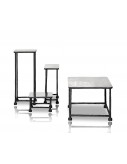 Structure in unfinished cast aluminium with matte black coating with mirror-finish polished top. Any surface blemishes are attributable to the type of material and to the craftsmanship, and are not to be considered as defects.