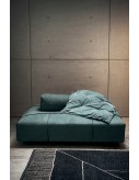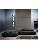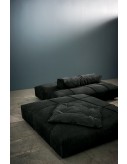 Modular article. Fir and poplar seat frame. Feet in semi-gloss black-stained beech. Padding in di©erentiated density polyurethane foam and washed and sterilized goose down. Springing with woven elastic straps of covered rubber. Back and armrest cushions with padding in washed and sterilized goose down with di©erentiated density polyurethane foam inserts. Contains a counterweight for balancing which allows it to be used as both an armrest and backrest in di©erent positions. Leather upholstery with sharp edge stitching.
