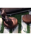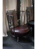 Metal frame treated with antirust base and protected with glossy acrylic enamel. Chilean pine plywood seat. Differentiated density polyurethane foam padding with 100% acrylic fibre polyester. Springing with woven elastic straps in coated rubber. Backrest with round leather strap weave, 6 mm diameter, dark brown colour. Revolving base. With cushion 50 x 70, 19½ x 27¼". 100% acrylic fibre polyester cushion with water-repellent fabric lining. Leather upholstery with sharp edge stitching.