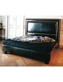 Plywood panel frame. Feet in plywood panel covered in same leather as bed. Differentiated density polyurethane foam filling. Available with studs in antiqued metal or with leather buttons.
