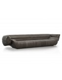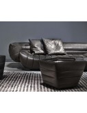 Chilean and fir plywood frame. Base in fir covered with leather. Differentiated density polyurethane foam filling with acrylic fibre covering. Springing with woven elastic straps of covered rubber. Upholstery carried out with assembled leather bands with an inner padding made of acrylic fibre.
