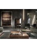 DRAGA OBRADOVIC. Born in Cecak, Serbia, 1964. She started to work in fashion first as a model and later as a fashion designer for women’s collections. As a designer, she attempts to achieve a union between painting and style. She achieved the ultimate expression of this desire in textile design.The German artist Aurel K. Basedow has chisen to develop the potential of resin through strong pictorial expression. His application to epoxy resins and pigments to walls, furniture and design items has produced unexpected transformations that have given us unique pieces that, together with the furnishings upholstered with Draga’s fabrics, create a fascinating and stylistically successful union.
