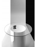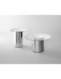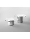Ramón Úbeda and Otto Canalda have always been spoken of as a ‘couple of convenience’ and continue as such, completing projects together with over 10 years of experience. Ramón takes on the conceptual part, and Otto the technical. They do not share a studio but understand and complement each other. They prefer to work afterhours, free from office routine and the pressure of delegated assignments. Their works do not follow an aesthetic pattern, nor a defining charateristical style, but always offer a component of surprise. Developments spring from a wealth of knowledge in manufacturing possibilities as well as all types of industrial technologies and artisanal processes, even mixing these as they have done with this new side table series, created to be minimalist. They are made using only the best quality glass having no visible joinings. The metallic sharp appearance evoke an optical illusion, a perfect future not belonging to the past. There are two produced sizes and three different heights. They can be used as a set or individually.