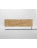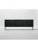 Fredrik Färg and Emma Marga Blanche are a young couple of designers (with Swedish and French origins respectively) who add personality, technique and innovation. They have been developing a technique for various years in their studio based in Stockholm, baptizing and registering it as Wood Tailoring TM, which includes the use of sewing machines directly over hard materials like wood, to join different parts. This way the pieces have their own aesthetic value and offer surprising and suggestive results such as the Couture armchair, initially presented by BD at last year’s Salone del Mobile in Milan. Using the same technique, which needs great artisanal ability, Färg & Blanche have now designed a very functional cabinet with simple decorative patterns. Available in natural wood or stained black and sewn with different colored threads.