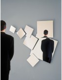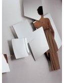 Seven mirrors randomly deployed on a zig-zagging spine configure the object. The seven faces are a thought, an intuition and, as such, something never definitive, always unfinished... In order to be able to define themselves, they need a place to reflect and thus to inhabit. In contrast, at the spine everything is terminated, constructed... There everything is definitive and conclusive. Intentionally, a part of this spine is left exposed to view in order to give a few clues as to the laws governing its construction.