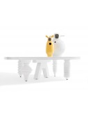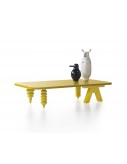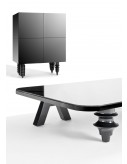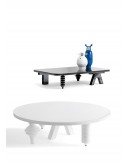Jaime Hayon —written without accent, as he prefers—is today a celebrity. He is the youngest Spanish designer with the greatest international image. Based in London, he is regularly featured in the press. He has achieved fame because he has talent, his own style and the determination to carry out his projects with quality. As things always used to be done. He often seeks inspiration in the past, and in craftsmen, who in other times abounded, he finds the necessary collaborators to manufacture his designs with care. This is one of his signs of identity, the other is to be found in the invisible border which separates design from art, a place much travelled in recent years, where Hayon is constructing his own universe with room for everything —drawings, toys, shoes, objects, furniture and interiors— and where nothing generates indifference. Some adore it and others —ever fewer— criticise it. For this reason there is much merit in BD having backed this creator from Madrid from the start of his career. His easy chair with a hood and the cabinet with many legs—Multileg— from the Showtime collection have become icons of contemporary design. They are beautiful pieces of furniture and are also functional. In Showtime plastics coexist with quilted upholstery, the glow of lacquered wood and the tradition of the best ceramics. Classicism and modernity. The contrasts and sophistication which give personality to Jaime Hayon’s work are represented in this ample collection which also includes vases, chairs, an elegant and comfortable wingchair —the Lounger— and this new low table which makes a good pair with the Multileg cabinet.