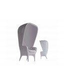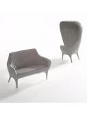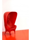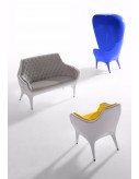 Armchair, sofa and cover in rotomoulded polyethylene. Upholstered in leather capitoné and bright lacquered.