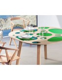 Steel structure painted in either beige or dark grey. Top in green glass with veneered natural ash, or blue glass and stained grey pine wood. Legs in solid natural ash or pine, stained grey.