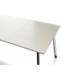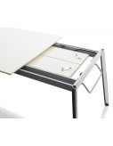 Extending tables. Legs in extruded aluminium polished. Tops and leaves in HPL.