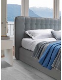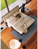 The elegant bed Daedalus is characterised by a rounded shape of the head, highlighted by a border in tone and a quilt that revisits in a contemporary, machining quilted. Bed frame floor with the possibility of having a convenient container.