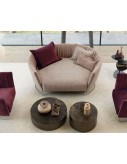 Inspired by lightness - afforded by an original, steel structure - Shellon stands out for its irregular, vertical pleats that create a rich yet minimalist pattern and for its curvy shape that is particularly enhanced in the island version. A lotus flower, a symbol of purity, that contains the idea of an elegant, open sofa that looks perfectly at home in any natural surroundings.