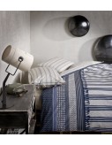 The Fork lampshade is a steel fork with a diffuser inspired by casual fashion and an informal, playful lifestyle. The light inside the diffuser illuminates its patchwork structure, the texture of the canvas and its jeans-style visible stitching creating an effect which is rather like switching on a light inside a tent. Nothing in Fork is left to chance. Its rings are not merely decorative but respond to practical needs with simplicity and immediacy. Its ivory or grey diffuser – made of linen treated with a special process that gives it a vintage appearance – can be combined with an ivory or brown metal mount for a total of four different colour combinations. Versatile and extremely flexible, its adjustment range is 360°. The structure joints in the floor and table versions also make it highly mobile. This means you can change the direction of the light as you please and have fun with the lamp, playing around with its infinite range of combinations. All of Fork’s dynamism is there in the suspension versions, which are available in two sizes, and in the wall version too.