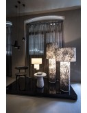 Luminous totems inspired by industrial piping - hence the name - dressed with casual-chic fabrics: this is a design idea that speaks the language of fashion, Diesel-style. The irregular weave of its unrefined linen, in bleached or textured silk-screen printed versions, is transformed into luminous décor revolutionising the traditional lampshade. Pipe is a family of floor and table lamps which can be used alone or in groups to illuminate, personalise and also define spaces with its large size and warm, whole surface diffused light.