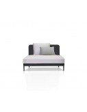 Käbu, curve in Japanese. With this name, I stress the conceptual process of the collection design. The light structure is dressed up with a technical fabric that becomes skin and wrap. The curvature generated as a result of the fabric tension on the structure highlights the desire for a lightweight, upholstered frame.