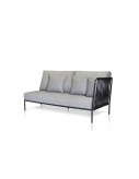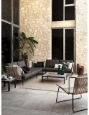 Collection made of steel tube, and finished with a double layer of zinc and polyester powder. Hand- woven finish using braided rope made of high resistance polyester, 24 mm/0.94” thick. Possibility of creating a wide variety of layouts due to the modularity of its elements.