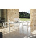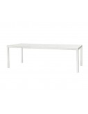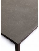 Structure made ​​of square steel tube, and finished with a double layer of zinc and polyester powder. Three options for the top: colored tempered glass 8 mm/0.31" thick, Trespa® HPL 8 mm/0.31" thick, and Kerlite® porcelain. Delivered unassembled.