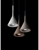 Aplomb is a small suspension lamp that creates direct and precise lighting on an underlying surface. Visible concrete is part of the expressive language of modern architecture and Foscarini, with Aplomb, uses this material with a spirit and a technology that is entirely original. The lamp displays a light touch of extreme elegance and formal simplicity, which softens the massive solidity of the concrete by enhancing its polished and yet unrefined material aspect. The small size of the lamp allows it to be used on its own (for example on a coffee table), in a line to light up a surface or even as a composition at different heights. It is available in three different colours. The choice of colours, with pigments added directly into the concrete mix, enhances the personality of the lamp in different ways: the natural grey bring out its materiality, the brown gives a touch of warmth, while the white highlights its elegance.