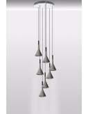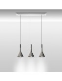 Suspension lamp with direct light. Cement diffuser, consisting off a special amalgam colored with pigments, produced by pouring the fluid mixture into a mould. Internal parabola shaped aluminium diffuser for the halogen version. Ceiling rose with galvanized metal bracket and batch-dyed ABS cover. Black electrical cable and canopy for the brown and grey version, white cable and canopy for the white version. Canopy decentralisation kit - multiple canopy available (up to 9 suspension lamps).