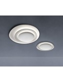 Bahia, a name that recalls white beaches, sunny skies and the elegance of Bossa Nova, is a captivating wall or ceiling light with an extraordinary design that showcases innovative interplay of light and shade. The light has a seductive form that recalls the aerial vision of an archipelago, with radiating light that subtly emphasizes its topographic nature. In the mini version the largest disc has been removed. The LED version is the natural development of Bahia. Foscarini has developed and engineered the LEDs in this model and managed to improve the magic of the light. In the mini version the largest disc has been removed. Bahia mini has many possibilities for use in both the domestic and contract sectors, especially in the low energy consumption and minimal maintenance LED version.