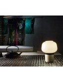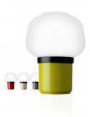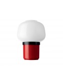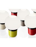 Doll is a small table lamp inspired by the shape of the traditional Japanese ‘Kokeshi Doll’. A round head and body, just like the Kokeshi doll’s silhouette, Doll has two simple and distinct volumes that create a new personality on the contemporary home scene. The head and body of Doll use two different materials for sensation and tradition: blown glass and plastic. The first emanates a warm, magical, diffused light, the plastic body uses the language of color. A black plastic ring draws a graphic sign that connects the two elements and, at the same time, acts as a support for the light source within. Doll was not designed to stay still in one place, but to travel through different rooms in the home: on the bedside table, an occasional table or a desk, for reading, studying or to add a luminous, decorative element to every space. The range of colours available allows this little lamp to blend with various domestic landscapes and lifestyles. Naturally elegant in green, warm and refined in grey, soft and reassuring in ivory, brilliant and exuberant in red, four shades allow everyone to choose their ideal Doll. Its personality and friendliness are emphasized with customized packaging, which makes it a great little gift idea for yourself or for others.