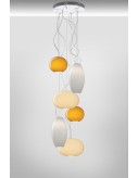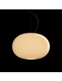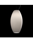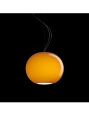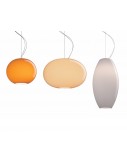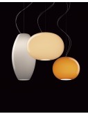 Suspension lamp with diffused light and down. Handblown cased glass diffuser, white on the inside and colored on the outside, with glossy finish. With the straw-yellow interior, the "warm white" version appears ivory in hue when the lamp is on and it remains white when off. Transparent injection moulded polycarbonate diffuser support. Stainless steel suspension cable and a transparent electrical cable. ABS glossy white canopy. Canopy decentralisation kit available.