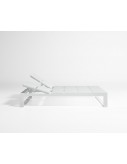 Made of anodised or thermo-lacquered aluminium profiles and 100% recyclable polyethylene. Optional polyurethane foam rubber covered with water-repellent fabric. Optional removable fabric cover.
