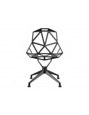 Swivel chair on 4 star base. Non-swivel version also available. Base and seat in die-cast aluminium polished or treated with sputtered fluorinated titanium and painted in polyester powder. Flame-retardant.