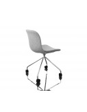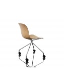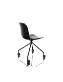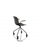 Chair on 4 star base, on wheels. Available with arms. Versions for outdoor also available. Seat in beech plywood, in polycarbonate, in polypropylene or in polypropylene covered in fabric.