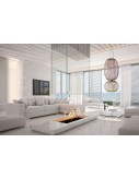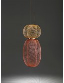 Suspension lamp. Structure (rods) and canopy in black, golden or copper electroplated steel. Two LEDs module are placed at the bottom edge of the structure. One facing up and the other facing down, provide ambience and direct light.