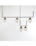 Suspension lamp. Structure and canopy in bronze electroplated steel. Diffuser in blown transparent, amber and grey glass. Strip LED column. Year: 2014.