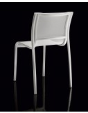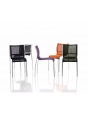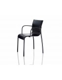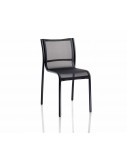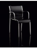 Stacking chair. Also available with arms. Frame in aluminium, polished or painted in polyester powder. Arms and crosspieces in die-cast aluminium polished or painted in polyester powder. Seat in polyester-vinyl polymer fabric, or in polyester-vinyl polymer and polyester-cotton fabric, or in leather. Versions for outdoor use available.