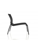 Stacking low chair. Frame in aluminium, polished or painted in polyester powder. Arms and crosspieces in die-cast aluminium polished or painted in polyester powder. Seat in polyester-vinyl polymer fabric, or in polyester-vinyl polymer and polyester-cotton fabric, or in leather. Versions for outdoor use available.