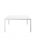 Tables. Legs in extruded aluminium painted in polyester powder. Self-bearing top in steel plate painted in polyester powder. Suitable for outdoor use.