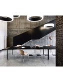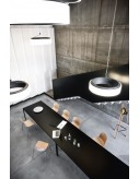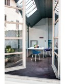 As its name suggests, Passe-partout is a table suitable for any space and occasion, as well as looking great with any chair from the Magis catalogue. Passe-partout offers solutions for all settings: from bars and restaurants to homes or offices. There is a version with a stainless steel base and column, and small, round HPL tops (in three different heights), particularly suitable for contract purposes, and another with four legs and rectangular sheet steel tops (available in four sizes), better-suited for dining rooms or meeting rooms. Year: 2014.
