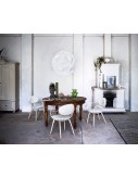 Armchair. Legs in solid ash, natural or painted. Seat in steel rod painted in polyester powder. Seat/back cushion with removable cover in fabric (Kvadrat, “Steelcut 2”) or leather.