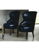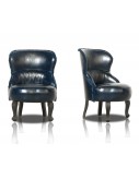 Frame in fir and poplar. Feet in wenghé-stained beech with wax finish. Filling in hand processed vegetable horsehair and padding. Seat springing with hand-tied steel springs on jute straps. Seat cushion in hand processed vegetable horsehair and polyurethane foam filling. Back with loinsrest in rigid polyurethane with vegetable horsehair and padding support. Piping with decorative blue braid.