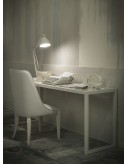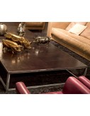 Frame in unfinished tubular metal. Visible weld and smoothing, with antirust protection with clear matte enamel and wax finish. Leather top.