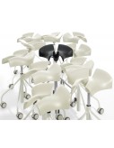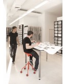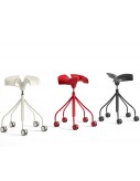 It is one of the most singular pieces of recent years. It is the work of a doctor, Jordi Badía, and industrial designer Otto Canalda. It is not simply a stool, this is a seat with medical prescription. It is specially recommended for all those activities which are undertaken in a seated position but require mobility. There are many of these in the working ambit: from the dentist to the supermarket cashier. The shapes of the seat, which are patented, guarantee the most beneficial position for the back with respect to the legs. At exactly 135º. The shapes have been developed from a meticulous anthropometric study and are characterised by a central division, which makes it natural to separate the legs and so achieve stability for the coxofemoral joint. Binaria is a chair which feels good. It has had time to demonstrate this fact. It first appeared in 2003 in the catalogue of the Oken company, which no longer exists. BD Barcelona Design now includes the chair in its own catalogue with three classic finishes – black, white and red.