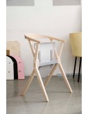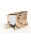The B Table was the first in the Extrusions collection and an aesthetic which is the product of a combination of industrial and manual processes. The result is a “highly crafted” piece which surprises with its solidity and lightness. To complement it, Konstantin Grcic has now designed the B chair, a wooden chair with pieces of aluminium in its structure. The legs are X-shaped and the seat folds, which allows for horizontal stacking and pays tribute to the name of the collection. A detail of genius. The decorative touch is concealed beneath the seat, which is offered in a varied and attractive range of colours.