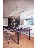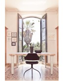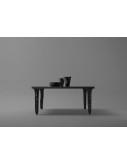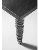 An extraordinary table by a creator out of the norm. Xavier Mañosa (Barcelona,1981) is in this order a potter, artist and designer. He inherited the artisanal tradition and family workshop and has found his place in contemporary ceramic art, designing pieces with his own characteristics. To demonstrate, this table has been modelled for BD with his own hands. Each leg is uniquely different. They are made of porcelain stoneware at high temperatures to guarantee resistance and durability. It’s presented in two versions. One is where the legs are in a black enamel, brilliant finish and the oak table top tinted in black to match. The other has a raw finish with a natural oak top. For this version, the material for the legs used is visible with no additional coatings. They are just as they are when they come out of the oven at 1250º. This is where the table’s name, Fang is from, which in Catalan means ‘clay’.