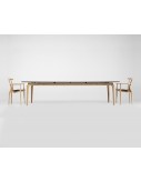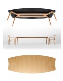 Structure in solid ash. Top in MDF with natural ash wood veneer. Finishings: varnished natural or stained oak or black. Edges and inferior part of the top always black.
