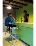 Stool to complete the family of chairs, Janet. The seat is made of cast aluminium. Two different heights are available.