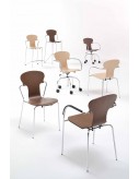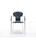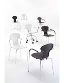 When the Varius chair was about to reach its 25th birthday, the possibility occurred to me of designing a more economical and versatile version that would inherit some of its virtues; above all the ergonomics (which make the Varius a very comfortable chair) and its characteristic backrest (a good deal more handsome than the numerous feeble imitations).Building on these virtues which I was not prepared to forego, I have been able to design a family of chairs that includes: an armless chair, a light armchair, a swivelling light armchair, a high stool and seating in rows. All the four-legged chairs are indefinitely stackable in very little space. The chair bodies may be made of wood or plastic. The gas injection of the plastic ones was a challenge which, once overcome, has enabled us to avoid all ribbing both in the back and under the seat.