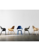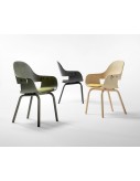 In 2006 we presented the Showtime Collection by Jaime Hayon and a year later, a chair carrying the same name characterised by its wide range of combinations and finishes. For the designer born in Madrid, this was his first chair to be produced and commercialized by a company all over the world. At that time Hayon was an emerging designer and today is internationally renowned. If success can be measured by the longevity of designs, then we can say that this chair has already reached 10 years of its commercial life. We believe that now is the time to launch a new version which does not make the original design obsolete, but rather compliments it. The chair’s name is Showtime nude with wooden legs, and is presented with a nearly nude appearance. The shapes are slightly different but visibly more organic, developed and matured, much the same as the designer’s works during the years. The new chair is presented in different finishings - natural or stained wood and a simple cushion as its sole accessory.