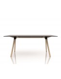 Tables. Frame in natural solid beech or painted; top in HPL; joint in polypropylene with glass fibre added.